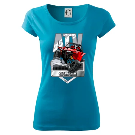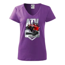 Tričko pre motoristu, na ktorom je červená štvorkolka ATV. Motoristické tričko so štvorkolkou musí mať doma každý motorista. Tričko s autom je vhodný darček pre motoristu, ktorý má rád adrenalín. Auto na tričku je ako živé.