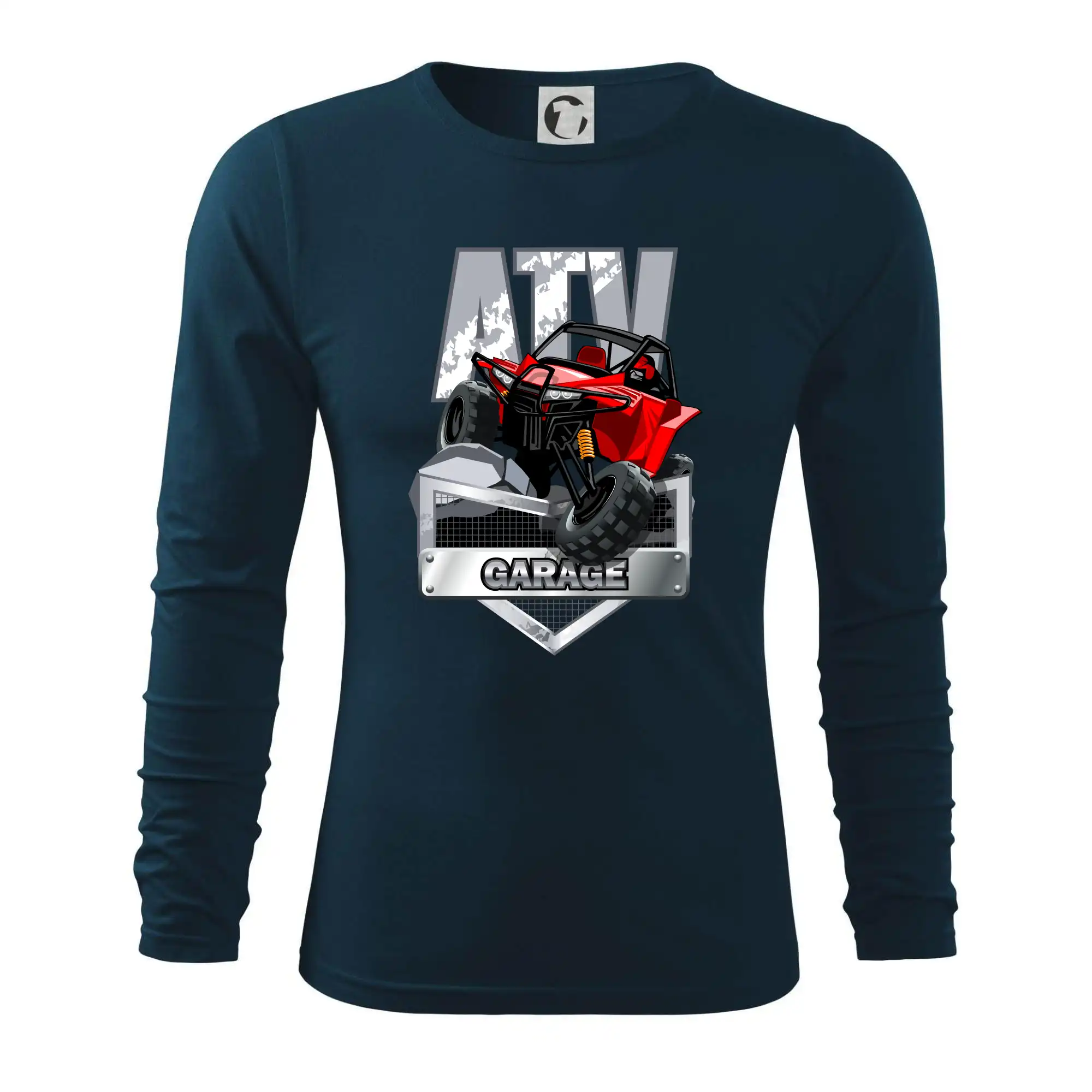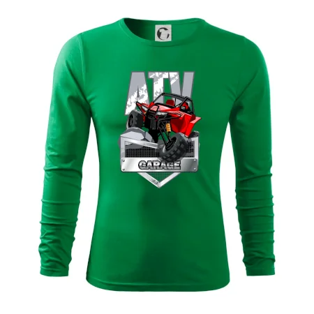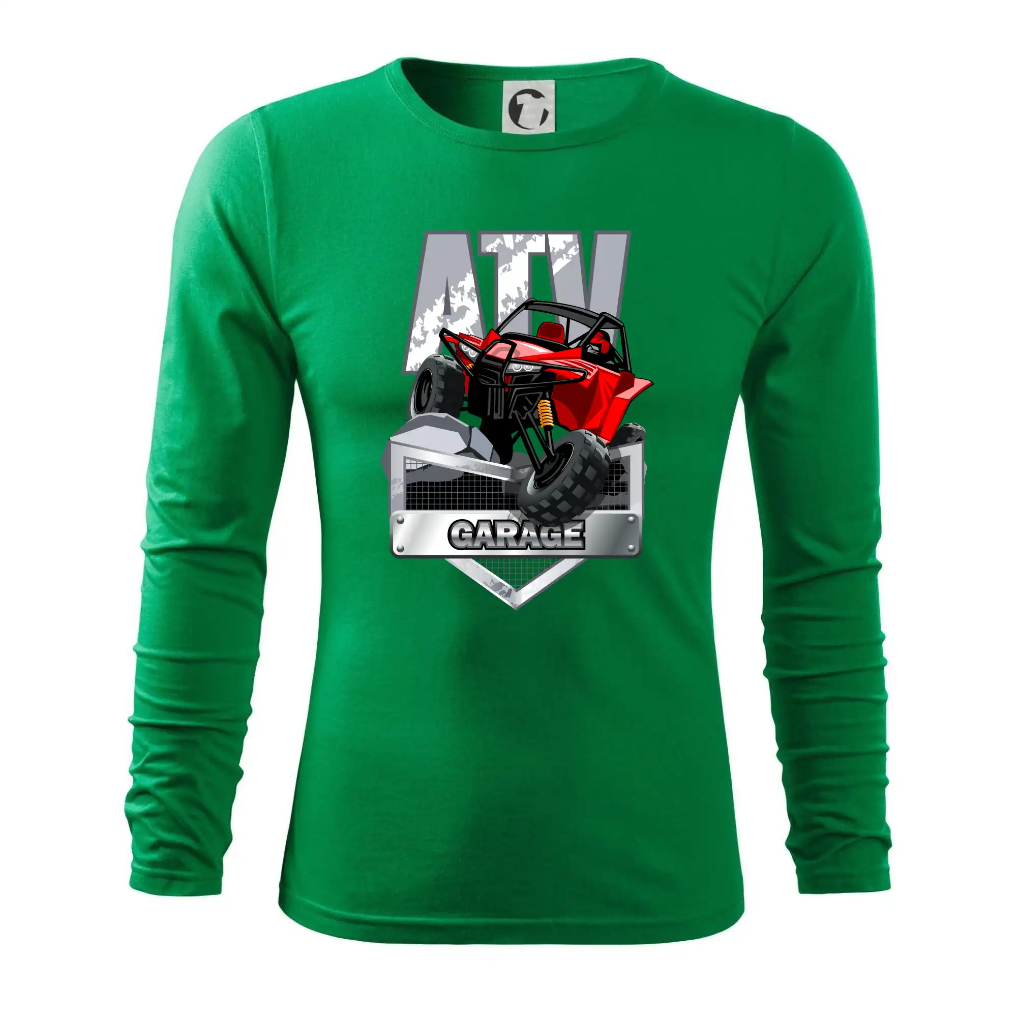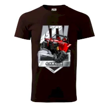 Tričko pre motoristu, na ktorom je červená štvorkolka ATV. Motoristické tričko so štvorkolkou musí mať doma každý motorista. Tričko s autom je vhodný darček pre motoristu, ktorý má rád adrenalín. Auto na tričku je ako živé.