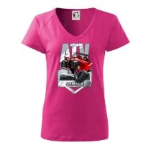Tričko pre motoristu, na ktorom je červená štvorkolka ATV. Motoristické tričko so štvorkolkou musí mať doma každý motorista. Tričko s autom je vhodný darček pre motoristu, ktorý má rád adrenalín. Auto na tričku je ako živé.