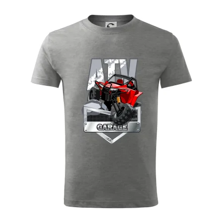 Tričko pre motoristu, na ktorom je červená štvorkolka ATV. Motoristické tričko so štvorkolkou musí mať doma každý motorista. Tričko s autom je vhodný darček pre motoristu, ktorý má rád adrenalín. Auto na tričku je ako živé.