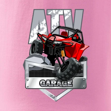 Tričko pre motoristu, na ktorom je červená štvorkolka ATV. Motoristické tričko so štvorkolkou musí mať doma každý motorista. Tričko s autom je vhodný darček pre motoristu, ktorý má rád adrenalín. Auto na tričku je ako živé.