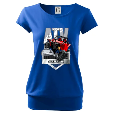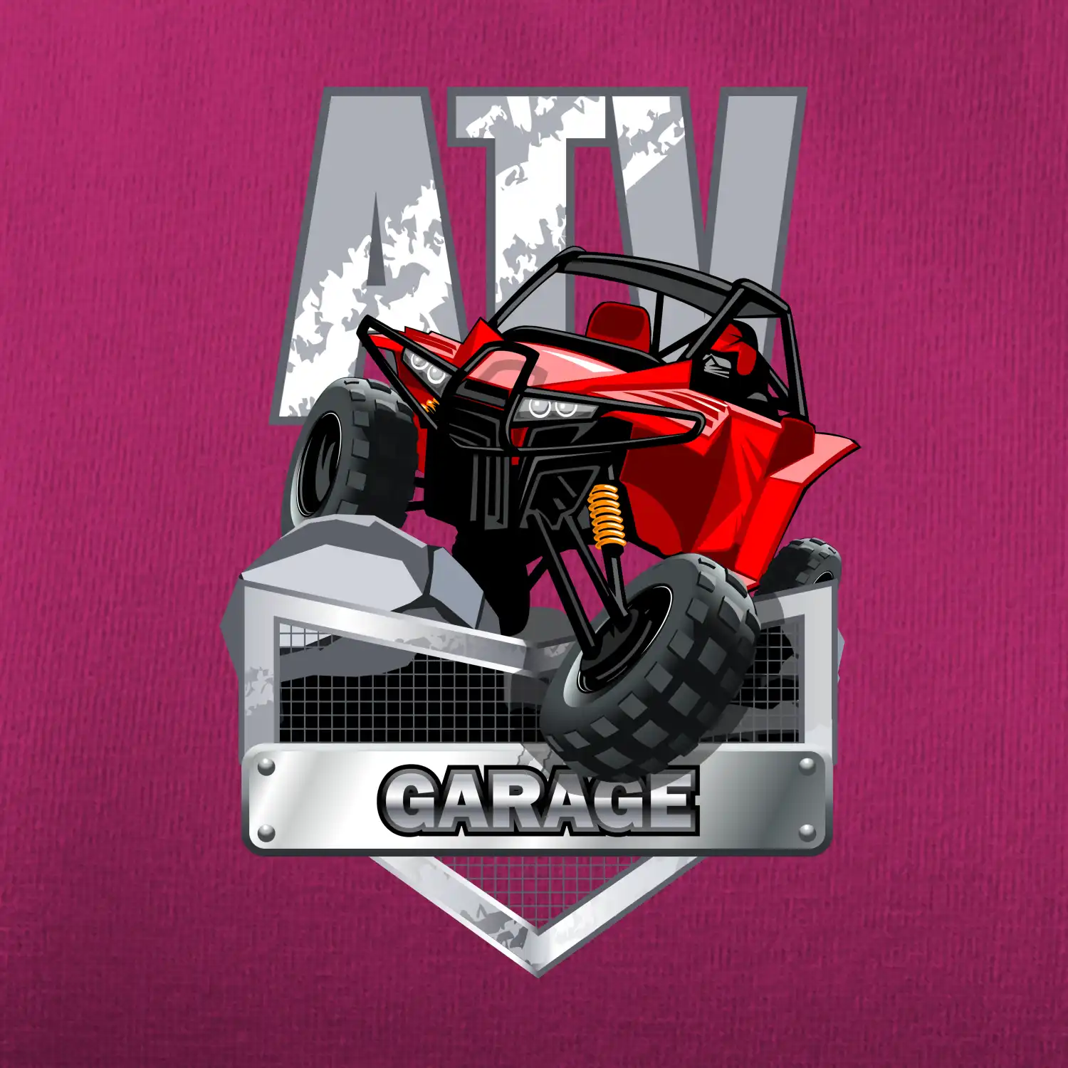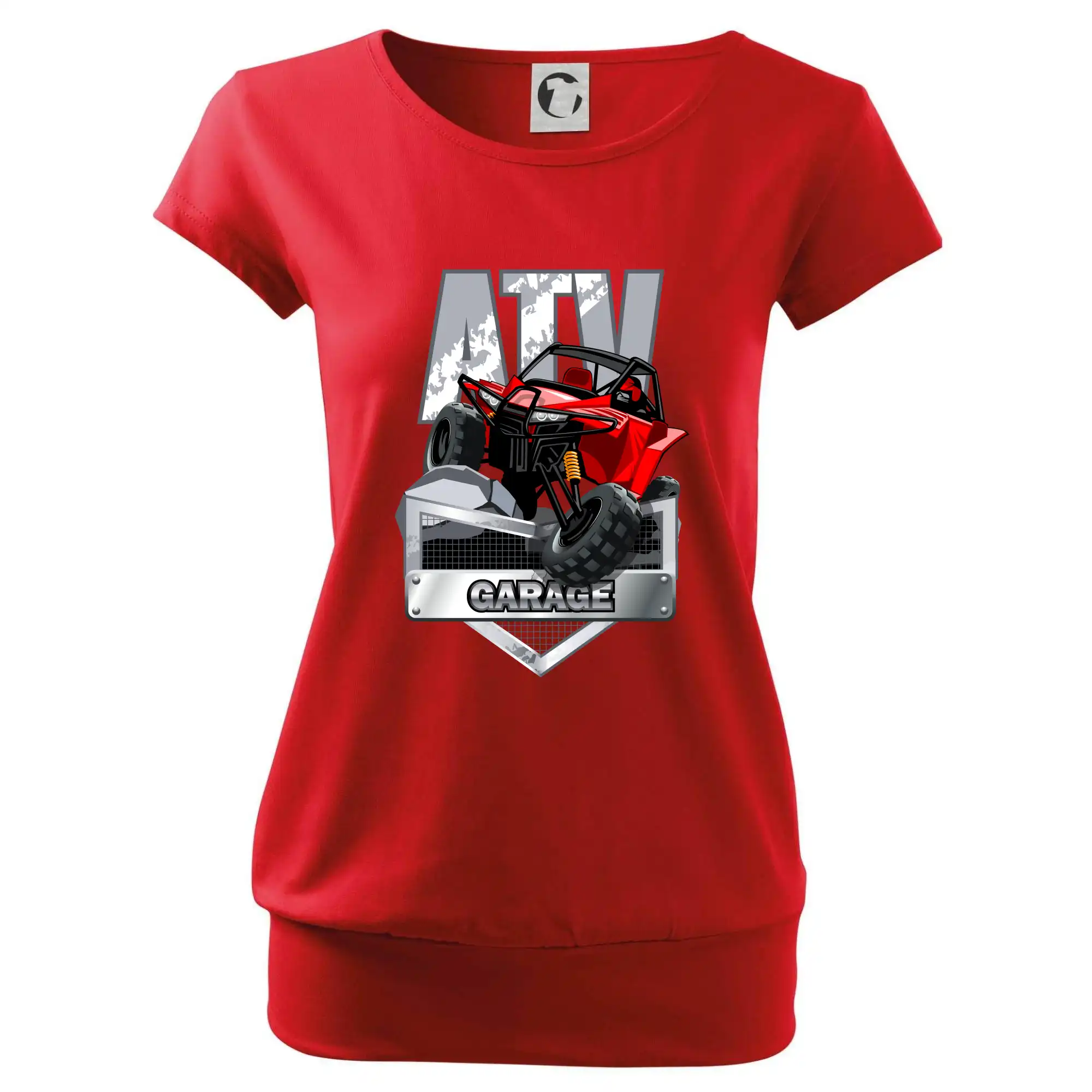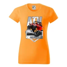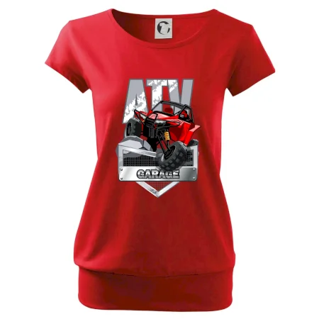 Tričko pre motoristu, na ktorom je červená štvorkolka ATV. Motoristické tričko so štvorkolkou musí mať doma každý motorista. Tričko s autom je vhodný darček pre motoristu, ktorý má rád adrenalín. Auto na tričku je ako živé.