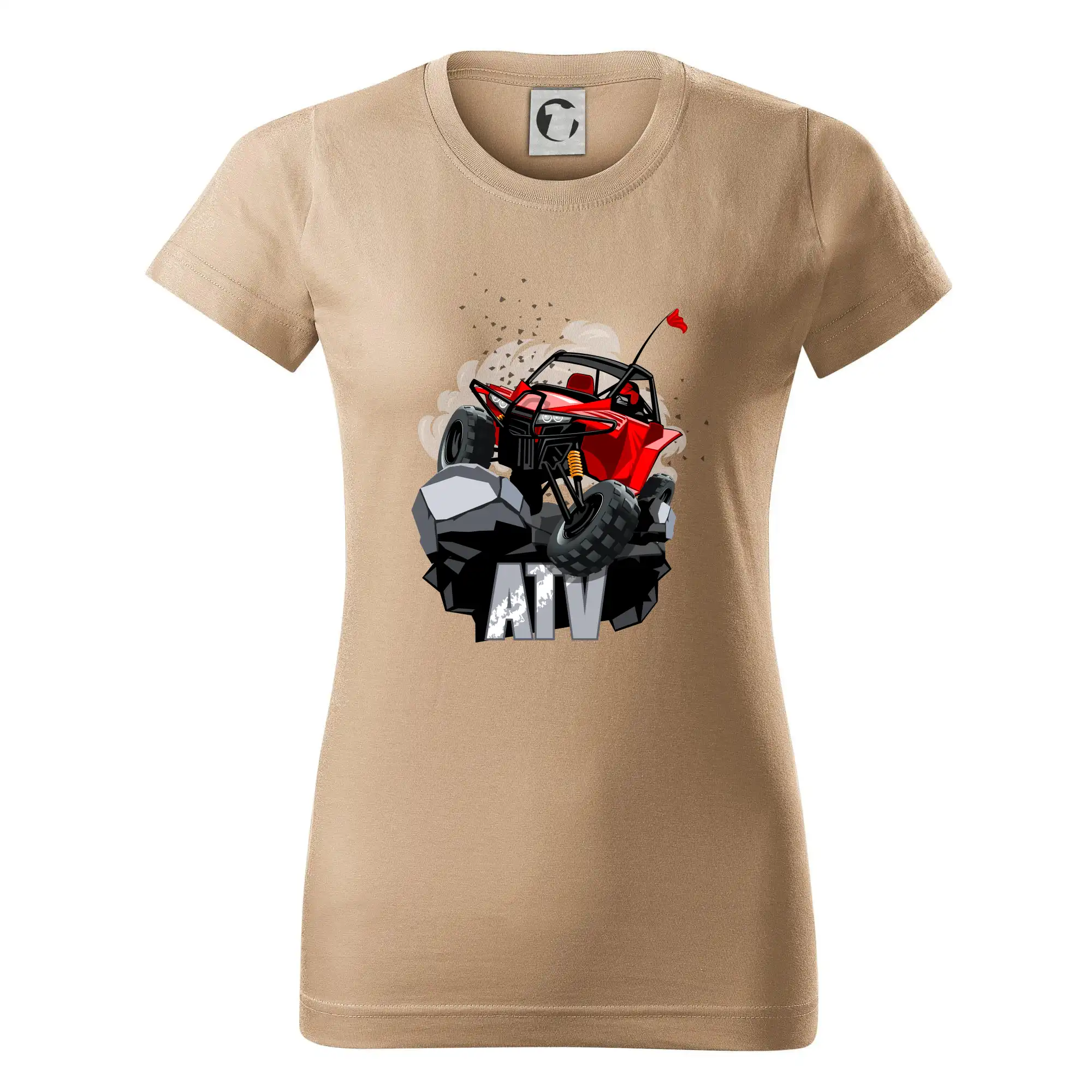 Tričko pre motoristu, na ktorom je červená buggy štvorkolka ATV. Motoristické tričko, kde je off road štvorkolka musí mať doma každý motorista. Tričko s buggy štvorkolkou je vhodný darček pre motoristu, ktorý má rád adrenalín. Štvorkolka na tričku je ako živá, proste parádne auto.
