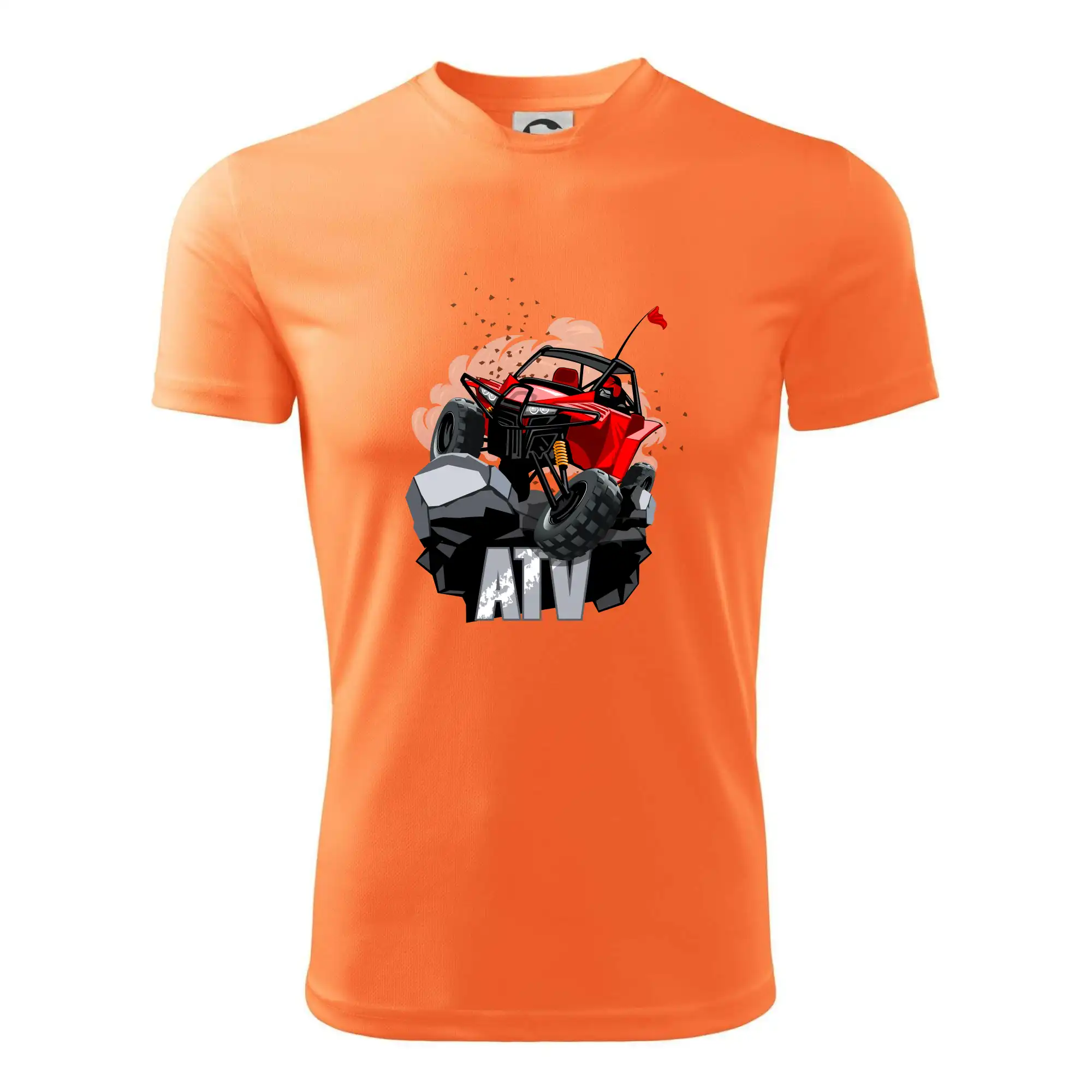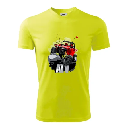 Tričko pre motoristu, na ktorom je červená buggy štvorkolka ATV. Motoristické tričko, kde je off road štvorkolka musí mať doma každý motorista. Tričko s buggy štvorkolkou je vhodný darček pre motoristu, ktorý má rád adrenalín. Štvorkolka na tričku je ako živá, proste parádne auto.