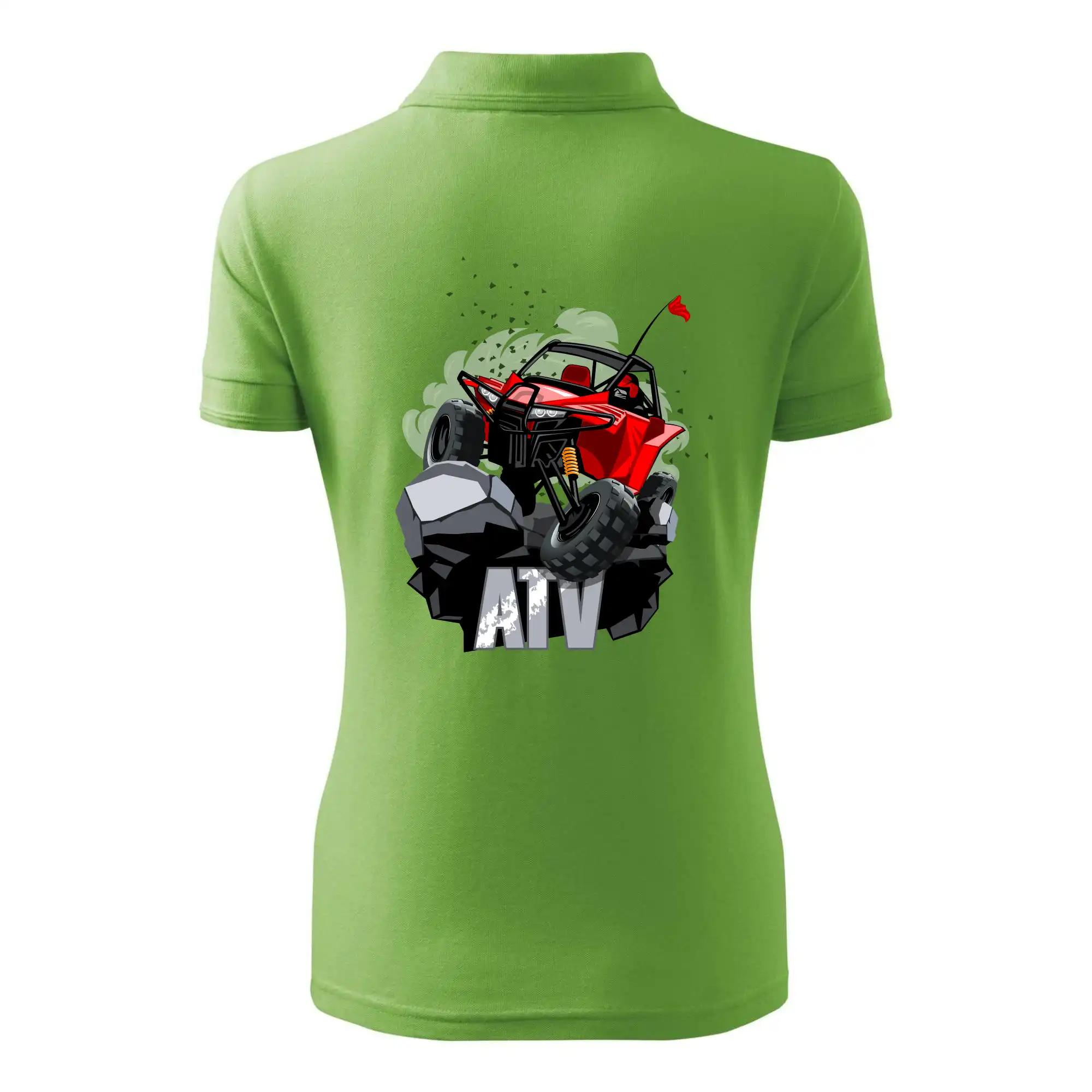 Tričko pre motoristu, na ktorom je červená buggy štvorkolka ATV. Motoristické tričko, kde je off road štvorkolka musí mať doma každý motorista. Tričko s buggy štvorkolkou je vhodný darček pre motoristu, ktorý má rád adrenalín. Štvorkolka na tričku je ako živá, proste parádne auto.