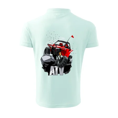 Tričko pre motoristu, na ktorom je červená buggy štvorkolka ATV. Motoristické tričko, kde je off road štvorkolka musí mať doma každý motorista. Tričko s buggy štvorkolkou je vhodný darček pre motoristu, ktorý má rád adrenalín. Štvorkolka na tričku je ako živá, proste parádne auto.