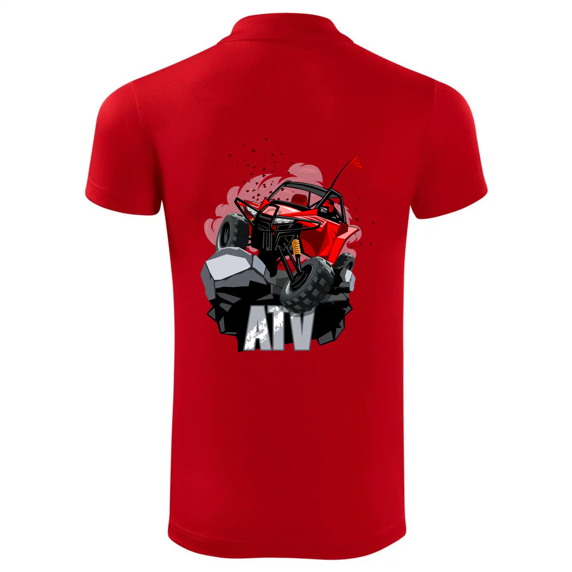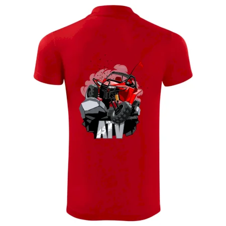 Tričko pre motoristu, na ktorom je červená buggy štvorkolka ATV. Motoristické tričko, kde je off road štvorkolka musí mať doma každý motorista. Tričko s buggy štvorkolkou je vhodný darček pre motoristu, ktorý má rád adrenalín. Štvorkolka na tričku je ako živá, proste parádne auto.