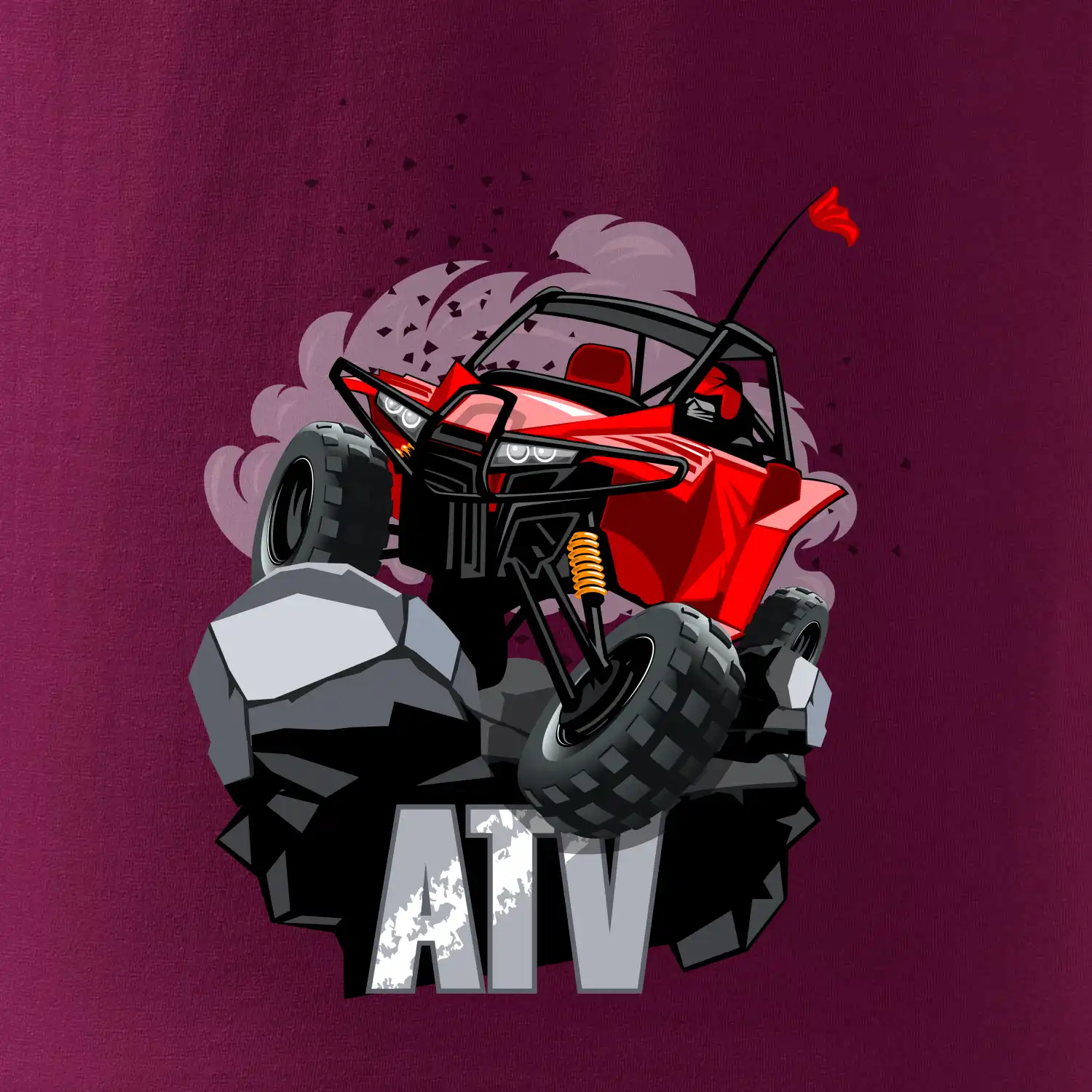Tričko pre motoristu, na ktorom je červená buggy štvorkolka ATV. Motoristické tričko, kde je off road štvorkolka musí mať doma každý motorista. Tričko s buggy štvorkolkou je vhodný darček pre motoristu, ktorý má rád adrenalín. Štvorkolka na tričku je ako živá, proste parádne auto.