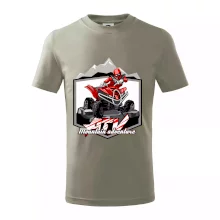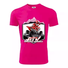 Tričko pre motoristu, na ktorom je červená štvorkolka ATV a v pozadí hory. Motoristické tričko, kde je off road štvorkolka musí mať doma každý motorista. Tričko so štvorkolkou je vhodný darček pre motoristu, ktorý má rád adrenalín. Štvorkolka na tričku je ako živá, proste parádne auto.
