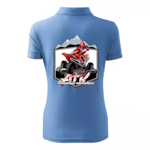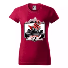 Tričko pre motoristu, na ktorom je červená štvorkolka ATV a v pozadí hory. Motoristické tričko, kde je off road štvorkolka musí mať doma každý motorista. Tričko so štvorkolkou je vhodný darček pre motoristu, ktorý má rád adrenalín. Štvorkolka na tričku je ako živá, proste parádne auto.