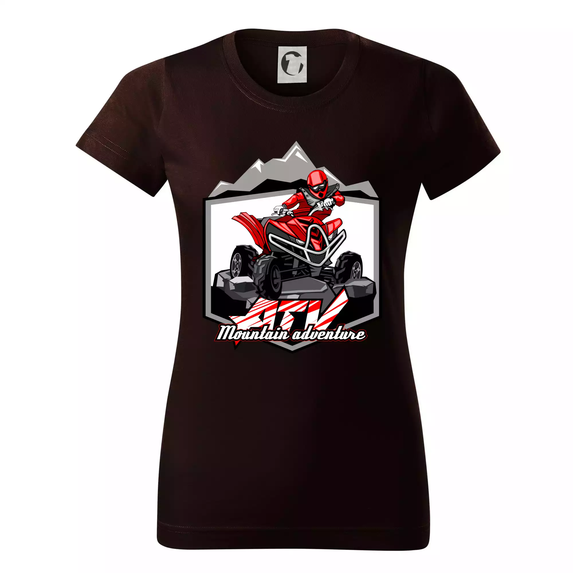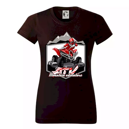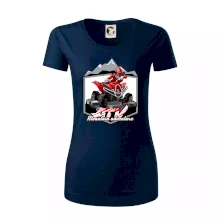 Tričko pre motoristu, na ktorom je červená štvorkolka ATV a v pozadí hory. Motoristické tričko, kde je off road štvorkolka musí mať doma každý motorista. Tričko so štvorkolkou je vhodný darček pre motoristu, ktorý má rád adrenalín. Štvorkolka na tričku je ako živá, proste parádne auto.