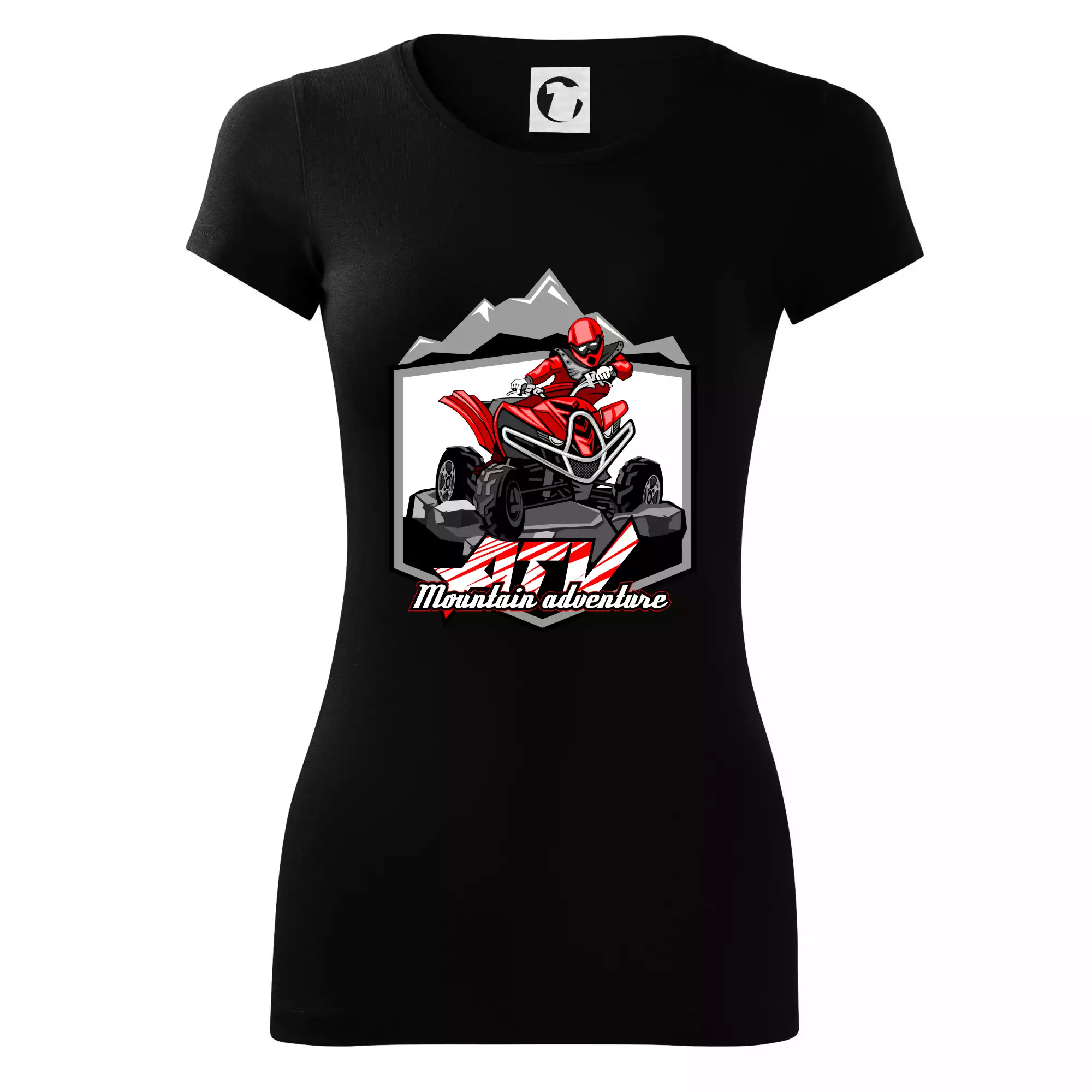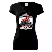 Tričko pre motoristu, na ktorom je červená štvorkolka ATV a v pozadí hory. Motoristické tričko, kde je off road štvorkolka musí mať doma každý motorista. Tričko so štvorkolkou je vhodný darček pre motoristu, ktorý má rád adrenalín. Štvorkolka na tričku je ako živá, proste parádne auto.