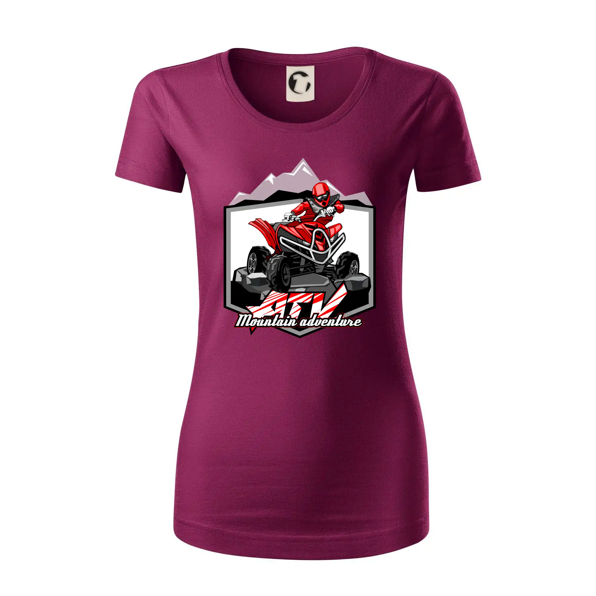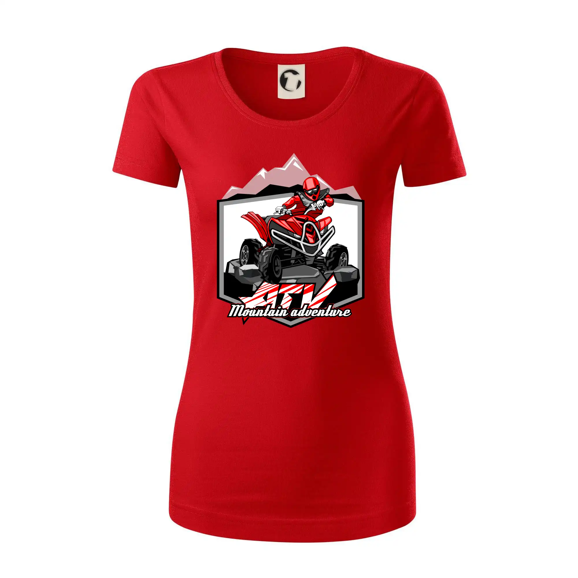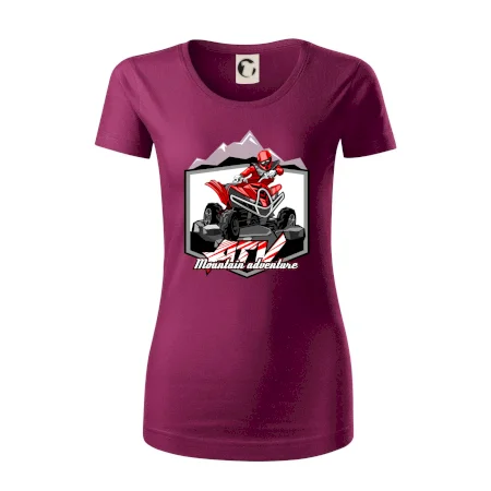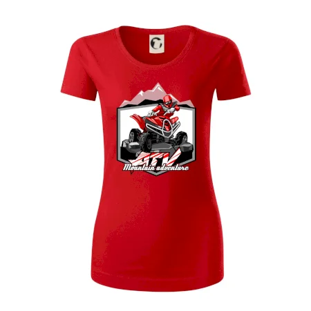 Tričko pre motoristu, na ktorom je červená štvorkolka ATV a v pozadí hory. Motoristické tričko, kde je off road štvorkolka musí mať doma každý motorista. Tričko so štvorkolkou je vhodný darček pre motoristu, ktorý má rád adrenalín. Štvorkolka na tričku je ako živá, proste parádne auto.