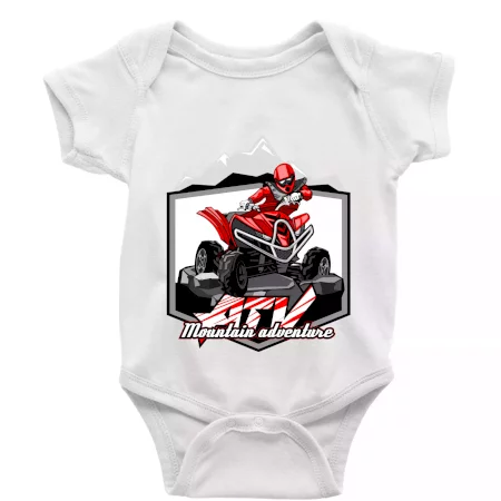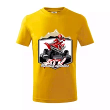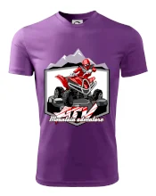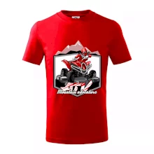 Tričko pre motoristu, na ktorom je červená štvorkolka ATV a v pozadí hory. Motoristické tričko, kde je off road štvorkolka musí mať doma každý motorista. Tričko so štvorkolkou je vhodný darček pre motoristu, ktorý má rád adrenalín. Štvorkolka na tričku je ako živá, proste parádne auto.