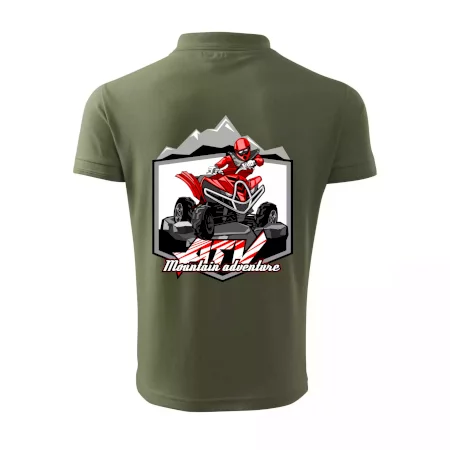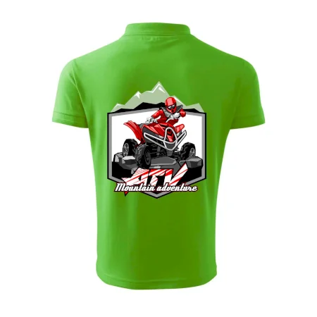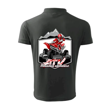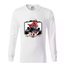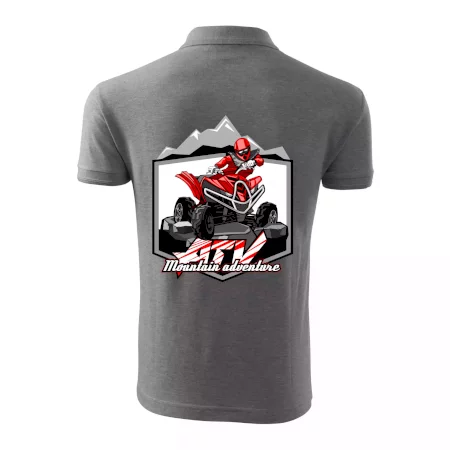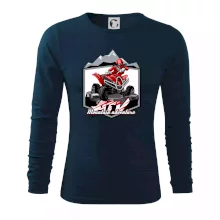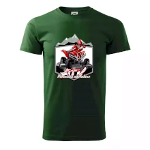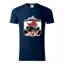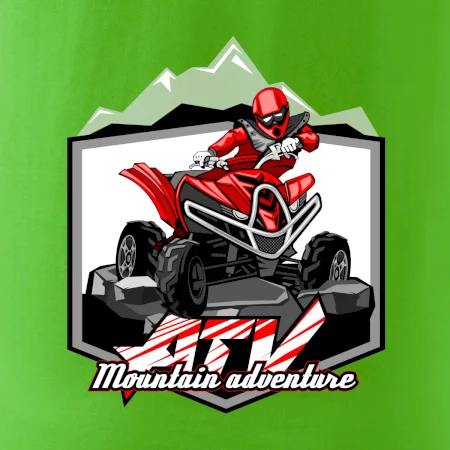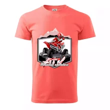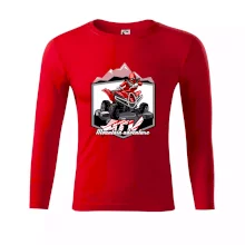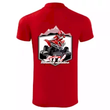 Tričko pre motoristu, na ktorom je červená štvorkolka ATV a v pozadí hory. Motoristické tričko, kde je off road štvorkolka musí mať doma každý motorista. Tričko so štvorkolkou je vhodný darček pre motoristu, ktorý má rád adrenalín. Štvorkolka na tričku je ako živá, proste parádne auto.
