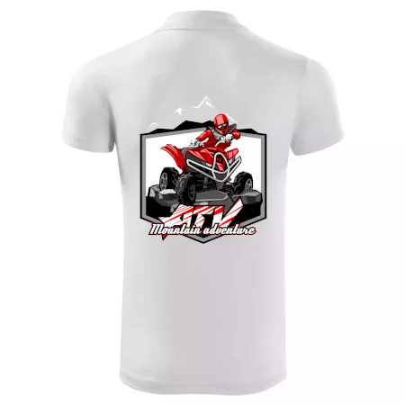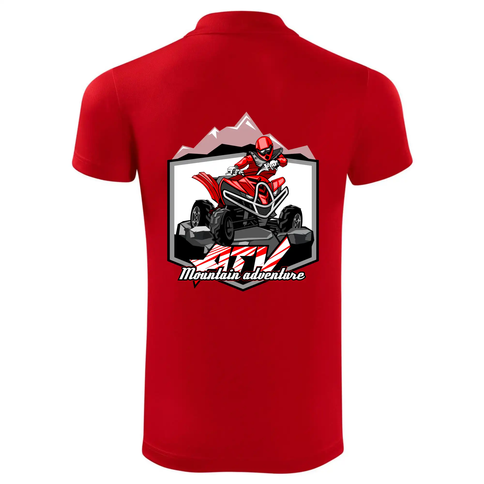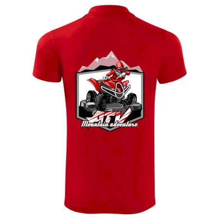 Tričko pre motoristu, na ktorom je červená štvorkolka ATV a v pozadí hory. Motoristické tričko, kde je off road štvorkolka musí mať doma každý motorista. Tričko so štvorkolkou je vhodný darček pre motoristu, ktorý má rád adrenalín. Štvorkolka na tričku je ako živá, proste parádne auto.