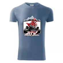Tričko pre motoristu, na ktorom je červená štvorkolka ATV a v pozadí hory. Motoristické tričko, kde je off road štvorkolka musí mať doma každý motorista. Tričko so štvorkolkou je vhodný darček pre motoristu, ktorý má rád adrenalín. Štvorkolka na tričku je ako živá, proste parádne auto.