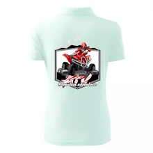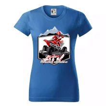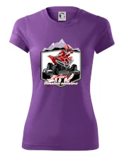 Tričko pre motoristu, na ktorom je červená štvorkolka ATV a v pozadí hory. Motoristické tričko, kde je off road štvorkolka musí mať doma každý motorista. Tričko so štvorkolkou je vhodný darček pre motoristu, ktorý má rád adrenalín. Štvorkolka na tričku je ako živá, proste parádne auto.