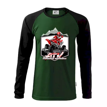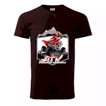 Tričko pre motoristu, na ktorom je červená štvorkolka ATV a v pozadí hory. Motoristické tričko, kde je off road štvorkolka musí mať doma každý motorista. Tričko so štvorkolkou je vhodný darček pre motoristu, ktorý má rád adrenalín. Štvorkolka na tričku je ako živá, proste parádne auto.