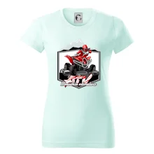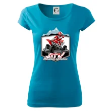 Tričko pre motoristu, na ktorom je červená štvorkolka ATV a v pozadí hory. Motoristické tričko, kde je off road štvorkolka musí mať doma každý motorista. Tričko so štvorkolkou je vhodný darček pre motoristu, ktorý má rád adrenalín. Štvorkolka na tričku je ako živá, proste parádne auto.
