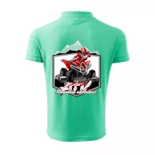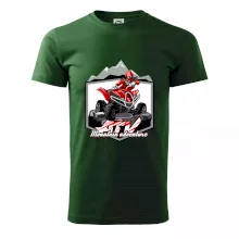 Tričko pre motoristu, na ktorom je červená štvorkolka ATV a v pozadí hory. Motoristické tričko, kde je off road štvorkolka musí mať doma každý motorista. Tričko so štvorkolkou je vhodný darček pre motoristu, ktorý má rád adrenalín. Štvorkolka na tričku je ako živá, proste parádne auto.