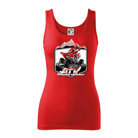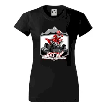Tričko pre motoristu, na ktorom je červená štvorkolka ATV a v pozadí hory. Motoristické tričko, kde je off road štvorkolka musí mať doma každý motorista. Tričko so štvorkolkou je vhodný darček pre motoristu, ktorý má rád adrenalín. Štvorkolka na tričku je ako živá, proste parádne auto.