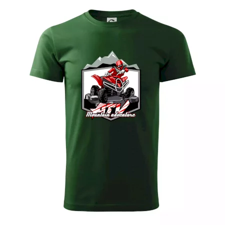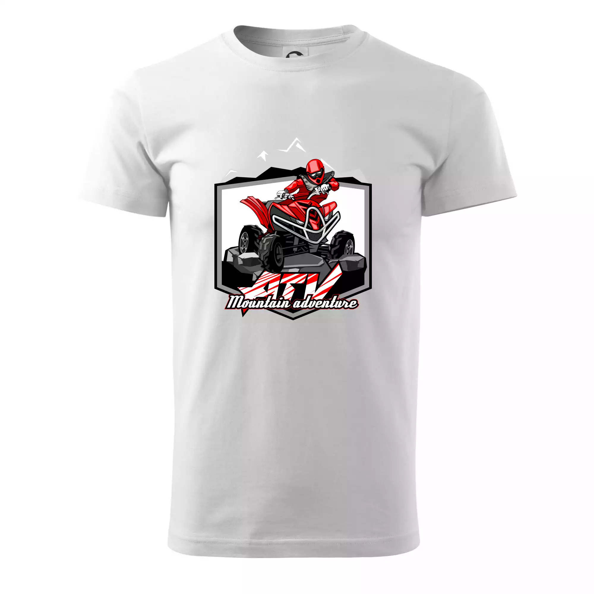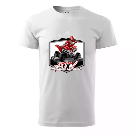 Tričko pre motoristu, na ktorom je červená štvorkolka ATV a v pozadí hory. Motoristické tričko, kde je off road štvorkolka musí mať doma každý motorista. Tričko so štvorkolkou je vhodný darček pre motoristu, ktorý má rád adrenalín. Štvorkolka na tričku je ako živá, proste parádne auto.