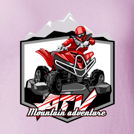 Tričko pre motoristu, na ktorom je červená štvorkolka ATV a v pozadí hory. Motoristické tričko, kde je off road štvorkolka musí mať doma každý motorista. Tričko so štvorkolkou je vhodný darček pre motoristu, ktorý má rád adrenalín. Štvorkolka na tričku je ako živá, proste parádne auto.