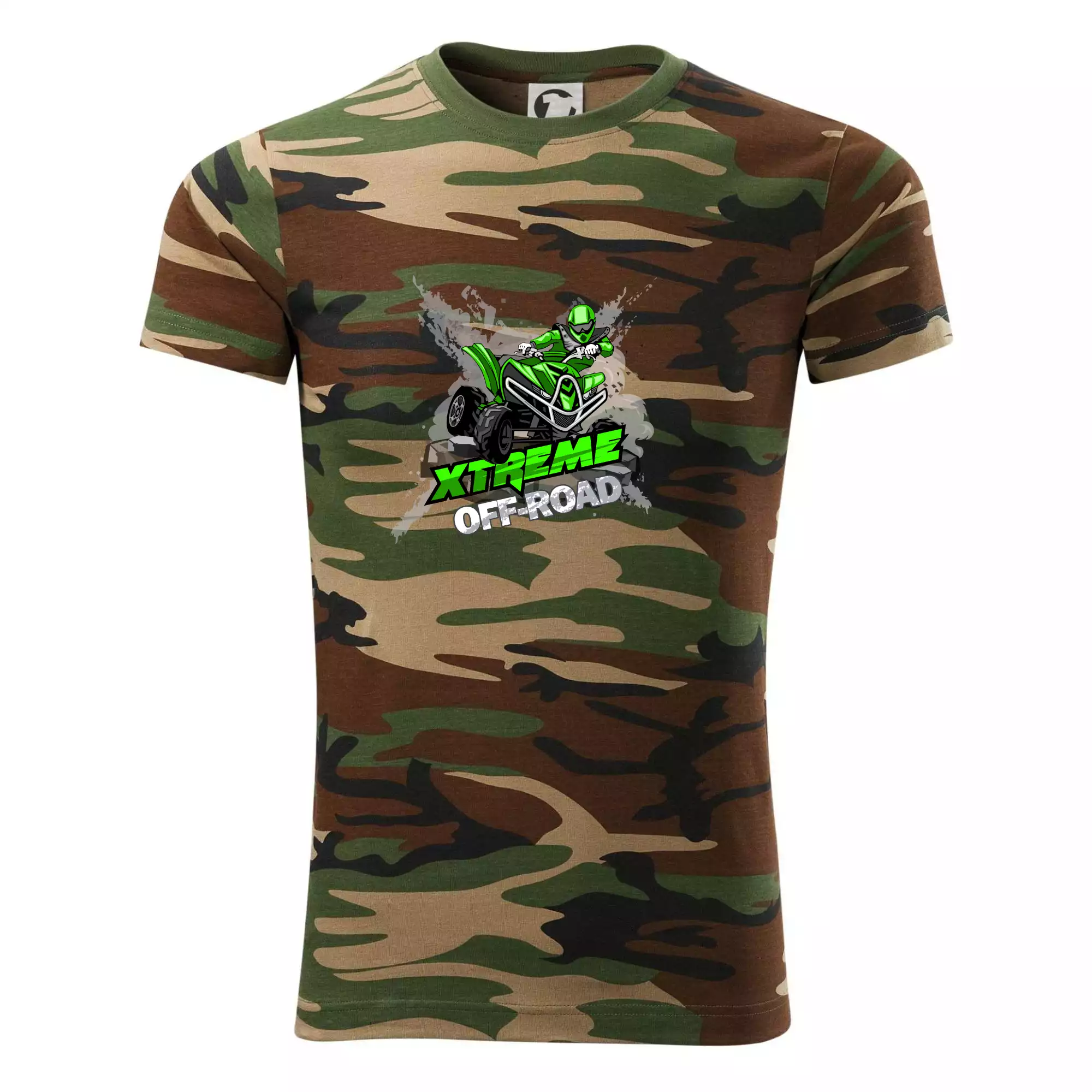 Tričko pre motoristu, na ktorom je zelená štvorkolka ATV. Motoristické tričko, kde je off road štvorkolka musí mať doma každý motorista. Tričko so štvorkolkou je vhodný darček pre motoristu, ktorý má rád adrenalín. Štvorkolka na tričku je ako živá, proste parádne auto.
