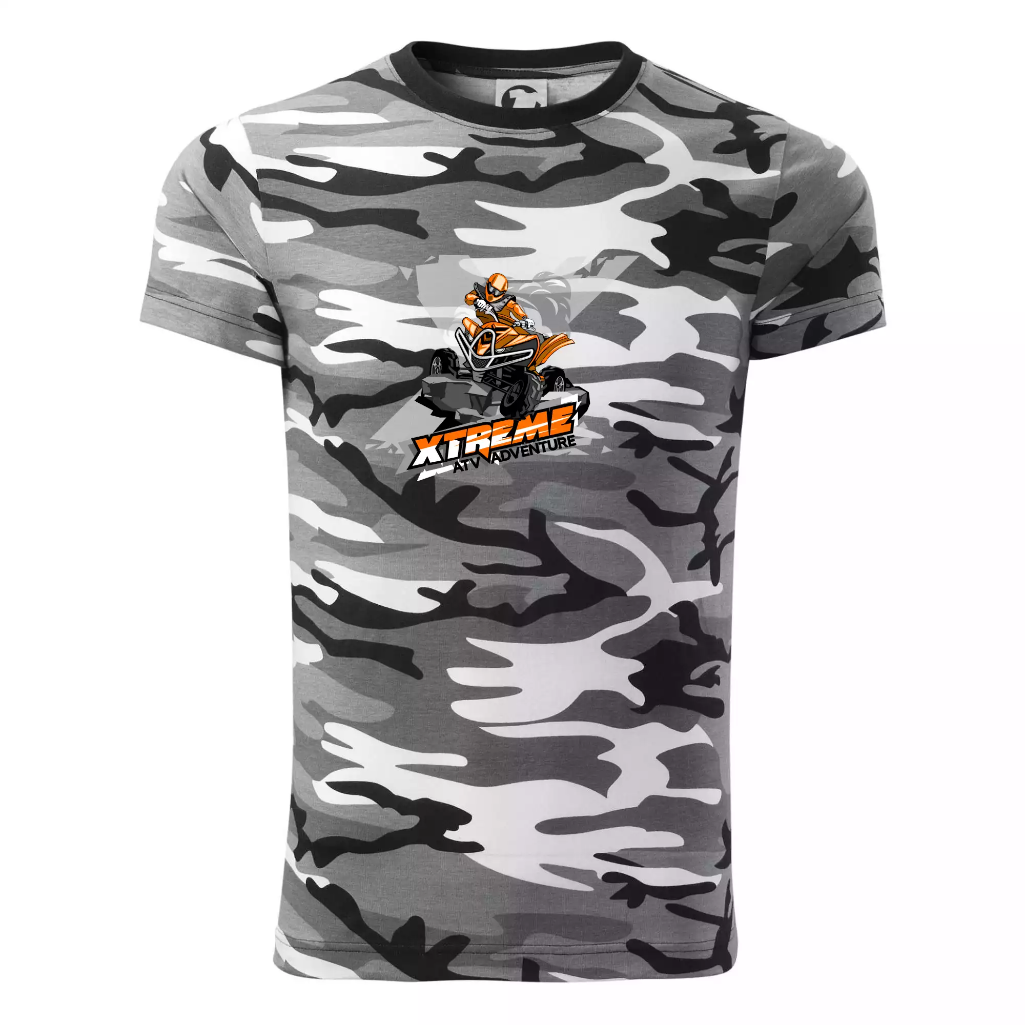 Tričko pre motoristu, na ktorom je oranžová štvorkolka ATV. Motoristické tričko, kde je ATV štvorkolka musí mať doma každý motorista. Tričko so štvorkolkou je vhodný darček pre motoristu, ktorý má rád adrenalín. Štvorkolka na tričku je ako živá, proste parádne auto.