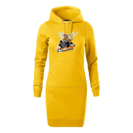 Dámske mikinové šaty MALFINI Snap 419 sú ideálnou voľbou pre ženy, ktoré hľadajú pohodlný a štýlový kúsok na voľný čas alebo každodenné nosenie. Ľahko vypasovaný strih s bočnými švami podčiarkuje ženskú siluetu, zatiaľ čo kapucňa s podšívkou a sťahovacou šnúrkou dodáva ležérny vzhľad. Šaty majú dĺžku nad kolená a sú vybavené našitým vreckom v štýle „klokanky“. Materiál je mäkký a príjemný na dotyk grâce à smesi bavlny a polyesteru s nepočesanou vnútornou stranou.