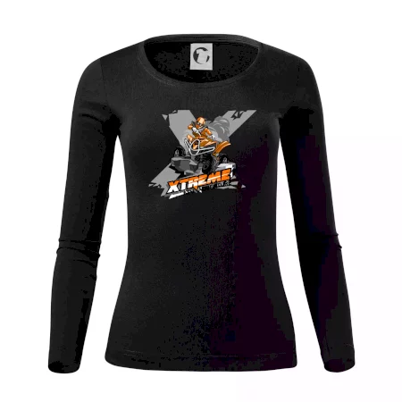 Tričko pre motoristu, na ktorom je oranžová štvorkolka ATV. Motoristické tričko, kde je ATV štvorkolka musí mať doma každý motorista. Tričko so štvorkolkou je vhodný darček pre motoristu, ktorý má rád adrenalín. Štvorkolka na tričku je ako živá, proste parádne auto.