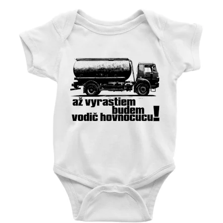 Detské body, poteší každé dieťa. Tričko pre dieťa s rôznymi motívmi nájdeš u nás na Myshirt. Vhodný darček pre dieťa. Tričko s našimi motívmi vyčaruje na detskej tvári úsmev. Tričko alebo body s nápisom "Až vyrastiem budem vodič hovnocucu".