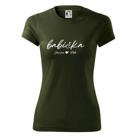 Babička Tričko s menami detí písacie písmo