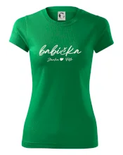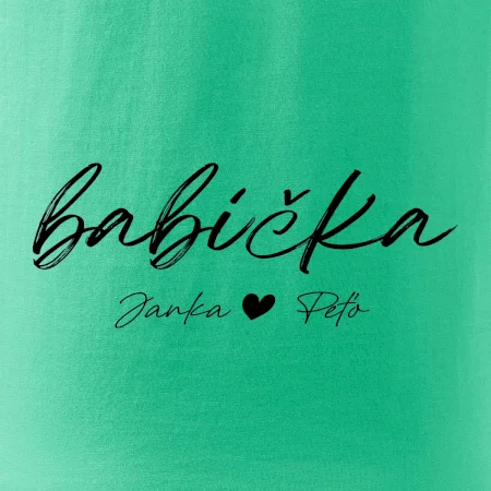Babička Tričko s menami detí písacie písmo