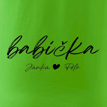 Babička Tričko s menami detí písacie písmo