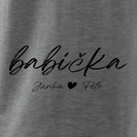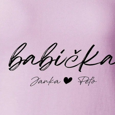 Babička Tričko s menami detí písacie písmo