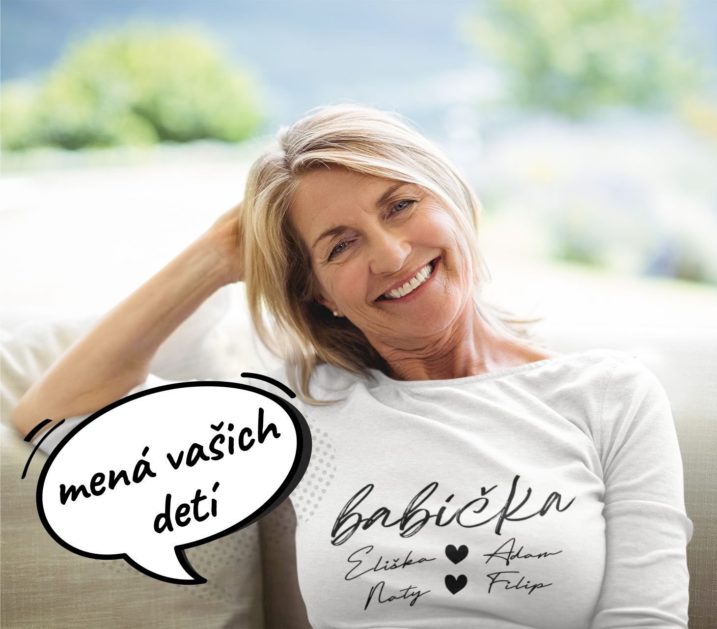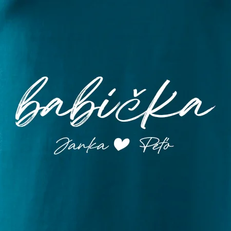 Babička Tričko s menami detí písacie písmo