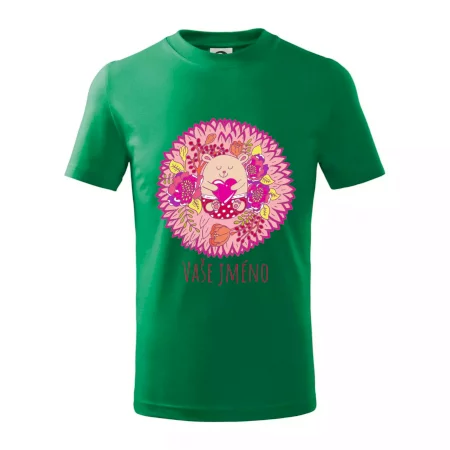 Detské tričko strednej gramáže s bočnými švami. Úzky priekrčník s prídavkom 5% elastanu. Vnútorná časť zadného priekrčníka začistená tkanou páskou. Spevnený ramenný šev.