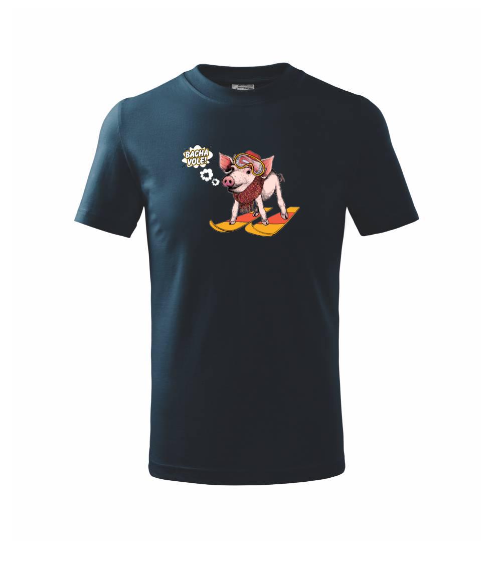 Zimné radovánky, snehuliaci, mokré topánky, sopeľ z nosa, zmrznuté palce na nohách, brečka všade okolo, vôňa cukrovinky a hlavne tie lyže a snowbič! To tu presne nájdeš! Tričko s prasaťom na lyžiach je vhodný darček pre každého, komu nechýba zmysel pre humor a miluje zimné športy.