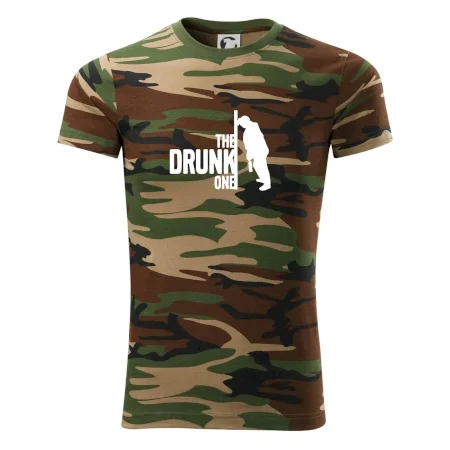Tričko strednej gramáže vo farbách camouflage. Strih s bočnými švami. Lem priekrčníku z rebrového úpletu s prídavkom 5% elastanu. Vnútorná časť zadného priekrčníka začistená páskou vo farbe camouflage.