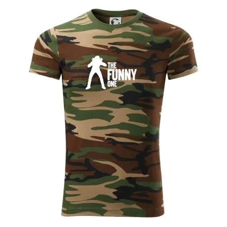 Tričko strednej gramáže vo farbách camouflage. Strih s bočnými švami. Lem priekrčníku z rebrového úpletu s prídavkom 5% elastanu. Vnútorná časť zadného priekrčníka začistená páskou vo farbe camouflage.