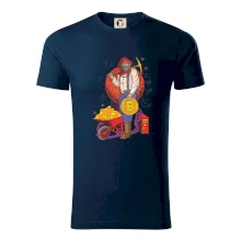 Pánske tričko s krátkym rukávom vyššej gramáže. Módne, priliehavý strih s bočnými švami. Úzky lem priekrčníka z rebrového úpletu s prídavkom 5% elastanu. Vnútorná časť zadného priekrčníku začistená páskou. Spevnený ramenný šev.