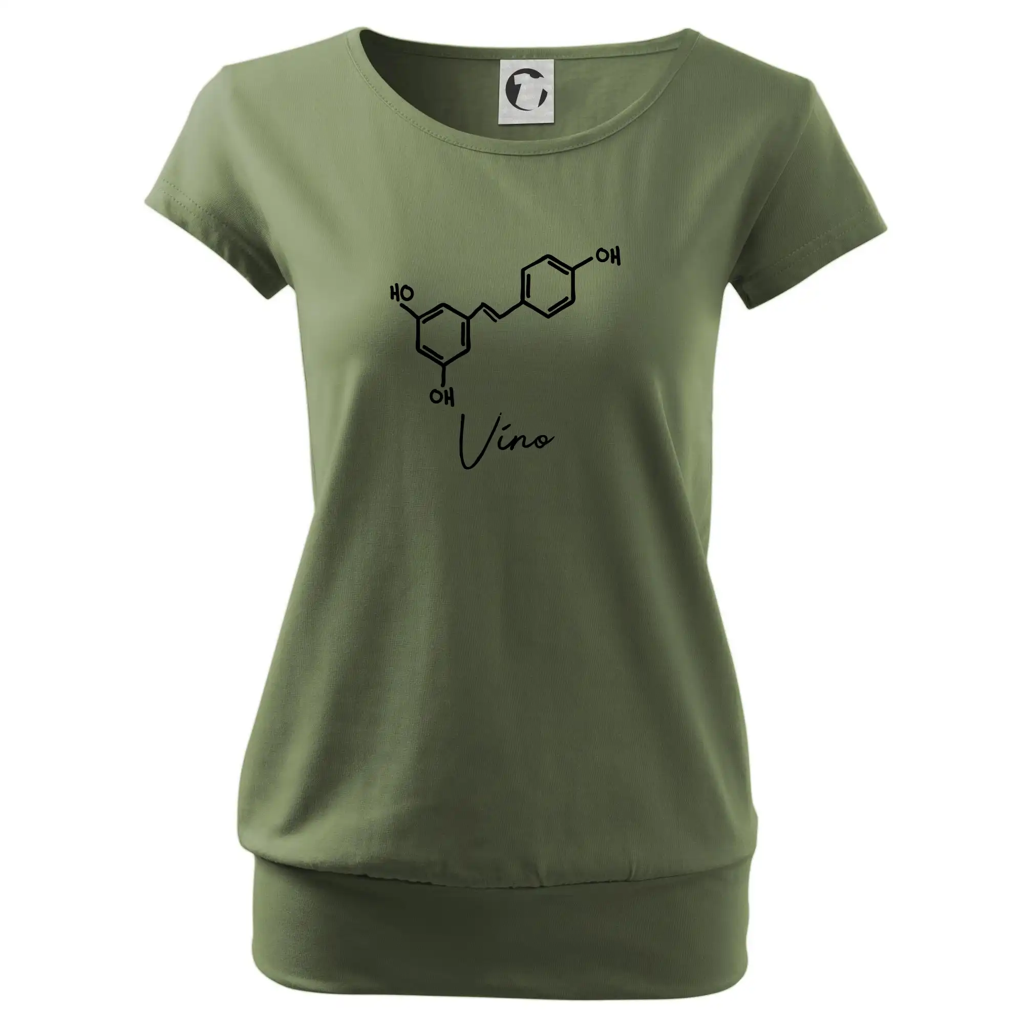 Trendové dámske tričko s veľmi krátkym rukávom, voľnejšieho strihu, v dolnom kraji všité do širokého lemu. Okrúhly priekrčník s úzkym lemom zo zhodného materiálu.