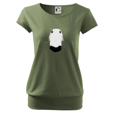 Trendové dámske tričko s veľmi krátkym rukávom, voľnejšieho strihu, v dolnom kraji všité do širokého lemu. Okrúhly priekrčník s úzkym lemom zo zhodného materiálu.
