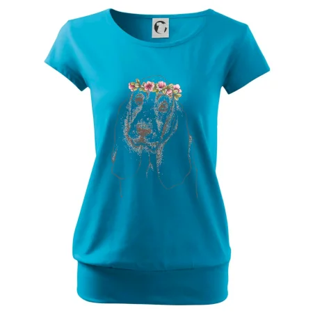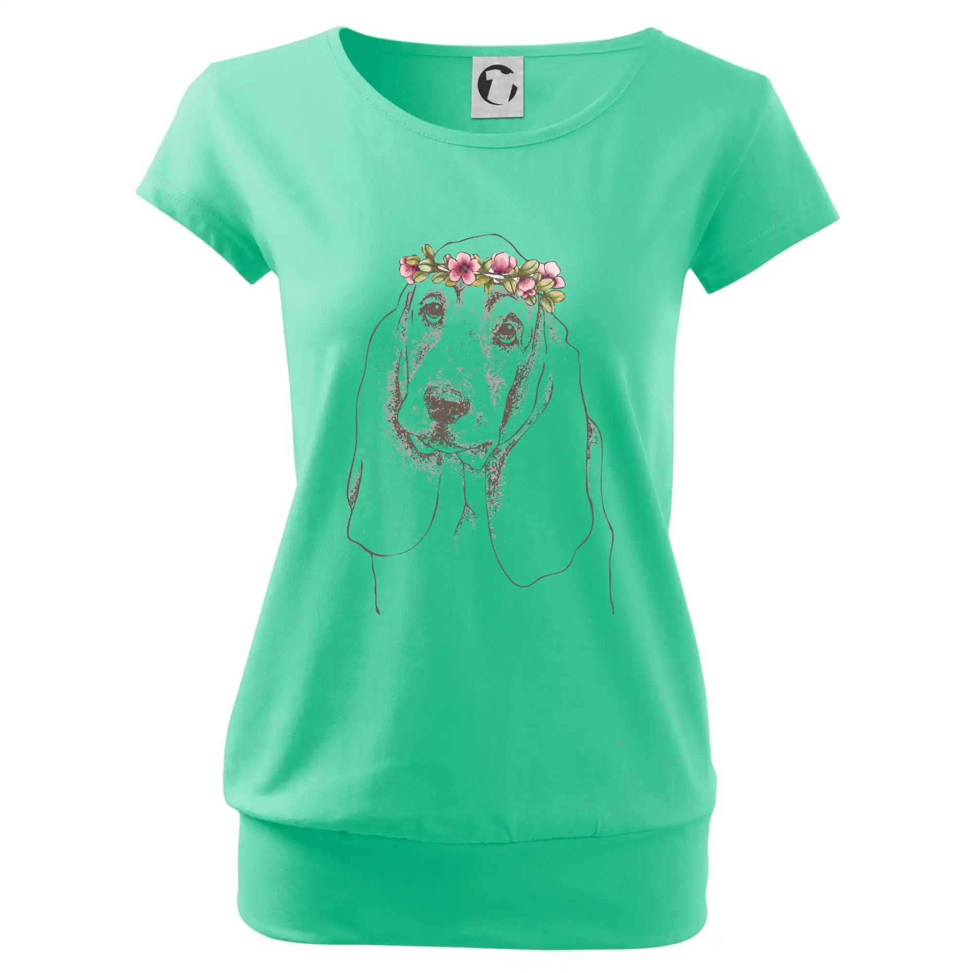 Trendové dámske tričko s veľmi krátkym rukávom, voľnejšieho strihu, v dolnom kraji všité do širokého lemu. Okrúhly priekrčník s úzkym lemom zo zhodného materiálu.