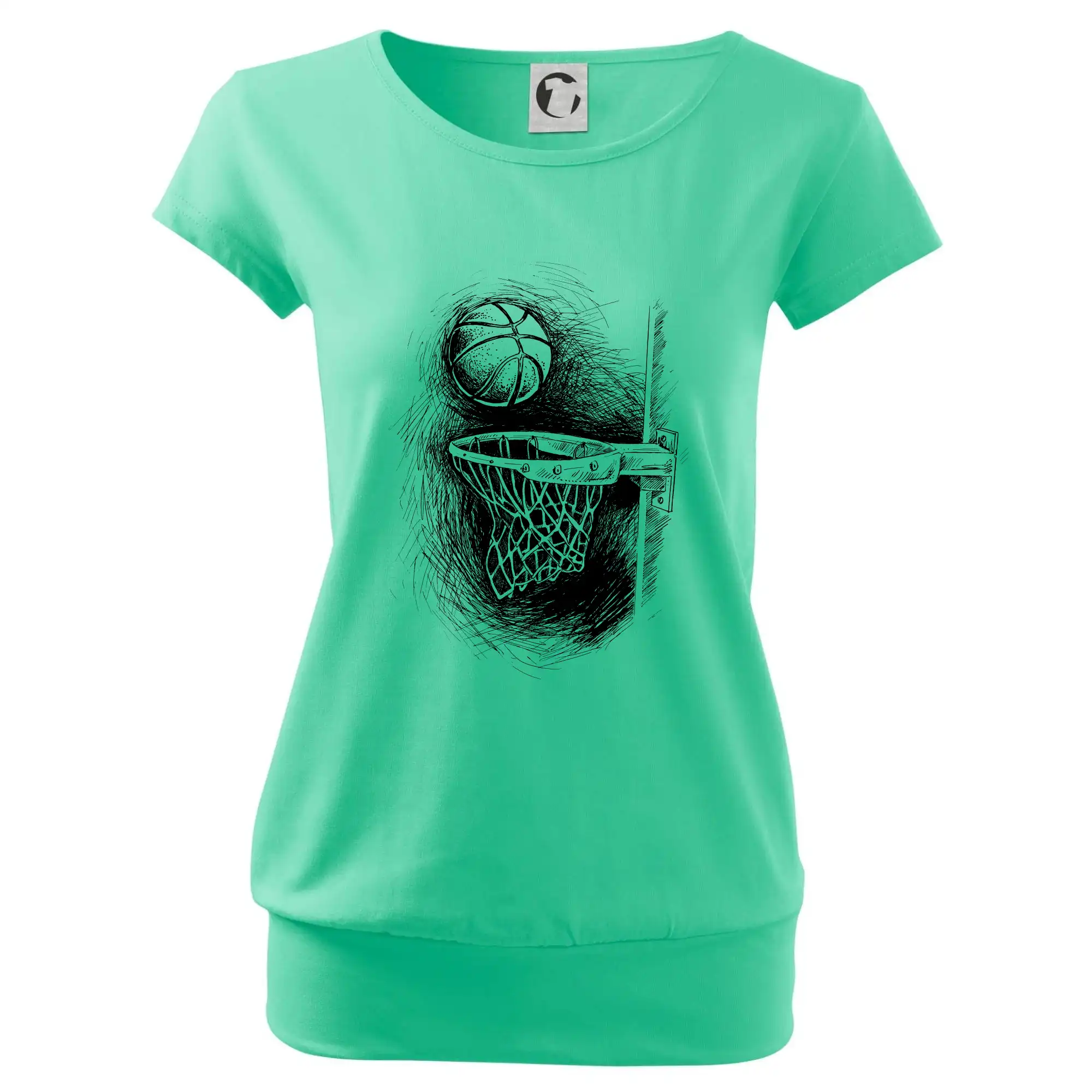 Trendové dámske tričko s veľmi krátkym rukávom, voľnejšieho strihu, v dolnom kraji všité do širokého lemu. Okrúhly priekrčník s úzkym lemom zo zhodného materiálu.
