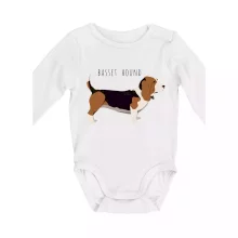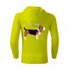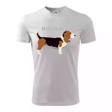 Basset hound pes s nápisom