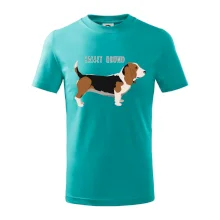 Basset hound pes s nápisom