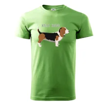 Basset hound pes s nápisom
